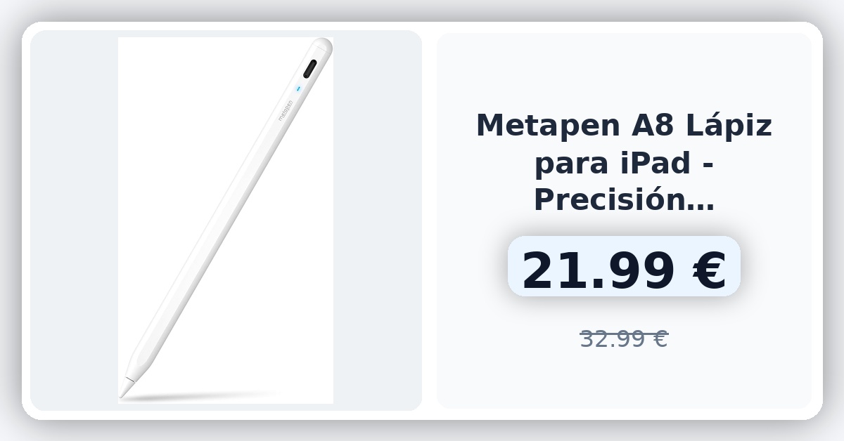 El lápiz para iPad Pro Metapen A8 destaca por su amplia compatibilidad con modelos de iPad recientes, carga rápida en 30 minutos y autonomía de hasta 10 horas. Sensible a la inclinación, rechaza la palma y se sujeta magnéticamente en el iPad para una experiencia de escritura y dibujo precisa y cómoda. Además, su punta duradera y la inclusión de repuestos lo hacen ideal para usuarios exigentes. 🇪🇸