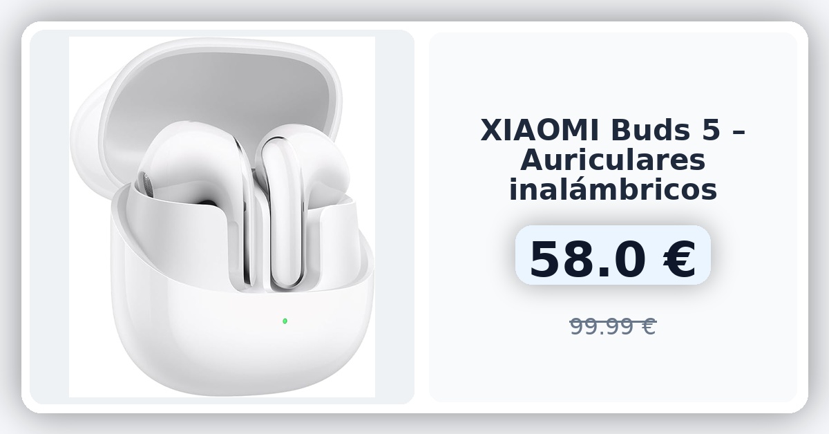 🌀 XIAOMI Buds 5 – Auriculares inalámbricos, cancelación Activa de Ruido, Harman Audio EFX, Hi-Res, diseño ergonómico, hasta 30 Horas de batería, Blanco (Versión ES) 🇪🇸