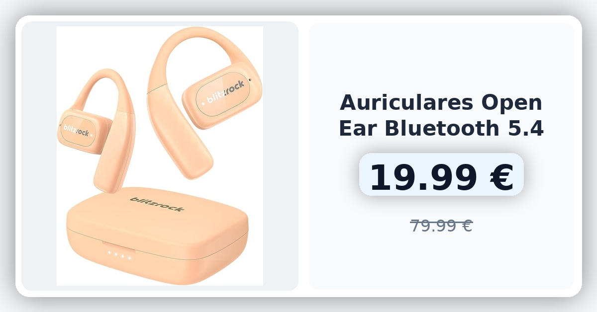 🌀 BlitzRock Auriculares Open Ear Inalambricos Bluetooth 5.4, Ligero, Sonido Claro, Llamadas Claras, Control por Aplicación, 28 Horas de Reproducción, Apto para Deportes y Correr, Rosa 🇪🇸
