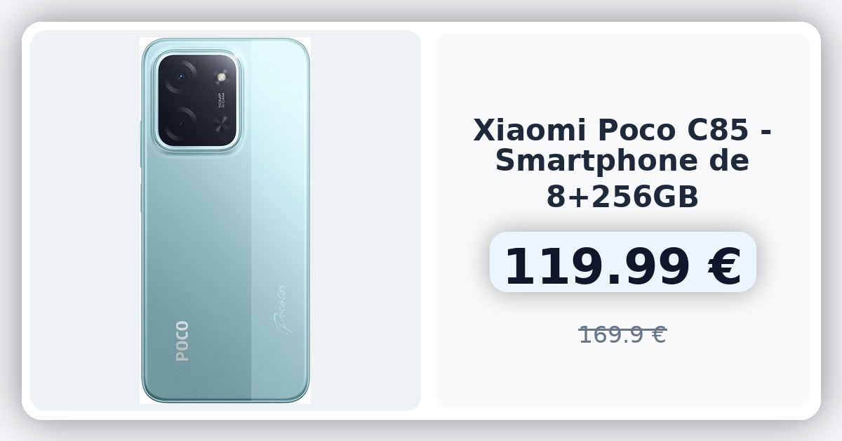 Descubre un mundo de posibilidades con el POCO C85. Una batería de 6000 mAh para un rendimiento sin límites, pantalla inmersiva de 6.9" con AdaptiveSync hasta 120 Hz, potente procesador de ocho núcleos para multitarea y juegos, y un sistema de doble cámara AI de 50MP para capturar cada detalle. Todo esto en un diseño elegante y cómodo. Vive la experiencia POCO C85. 🇪🇸