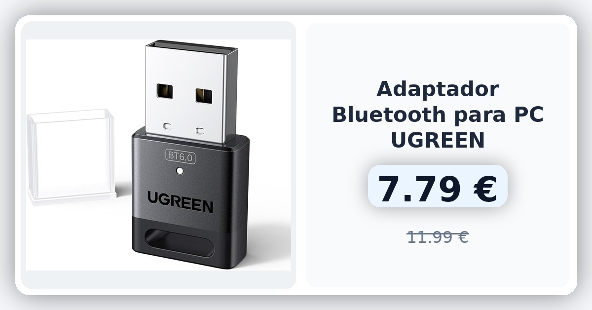 El adaptador USB Bluetooth 6.0 de UGREEN es la solución perfecta para añadir conectividad Bluetooth a tu PC con Windows 11, 10 o 8.1. Conexión estable y rápida para hasta 5 dispositivos simultáneos, transmisión de audio y datos sin retrasos, y tecnología de baja latencia para una experiencia sin interrupciones. ¡Haz que tu ordenador sea más versátil y funcional con este pequeño pero potente dispositivo! 🇪🇸