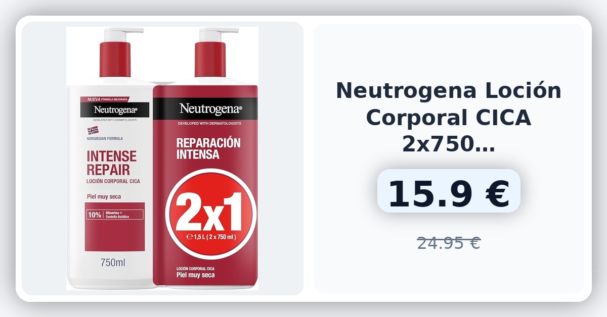 🌀 Neutrogena Fórmula Noruega Loción Corporal CICA Reparación intensa para piel seca (Pack de 2 x 750 ml), crema hidratante corporal reparadora con centella asiática 🇪🇸