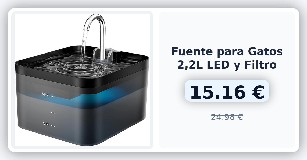 La fuente de agua para gatos con capacidad de 2,2L mantiene a tu mascota hidratada por varios días. Su diseño de grifo y sistema de filtración cuádruple ofrecen agua fresca y pura, promoviendo la salud renal. Con un motor silencioso, luz LED y almacenamiento de agua de emergencia, garantiza comodidad y bienestar. Fácil de limpiar y con un servicio al cliente excepcional. 🇪🇸