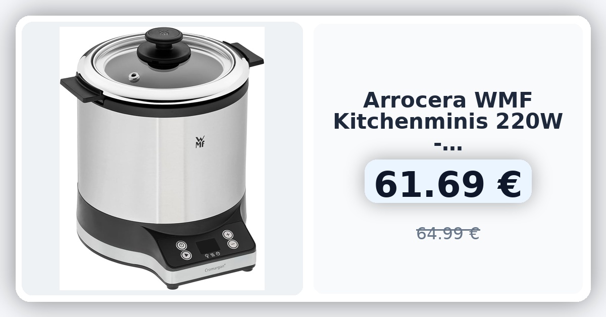 🌀 WMF Kitchenminis-Arrocera 220 W con 1 L de capacidad, con tapa recipiente, base dual, mantenimiento automático del calor, incluye taza y cuchara medidora,exterior de acero inoxidable de cromargan mate 🇪🇸