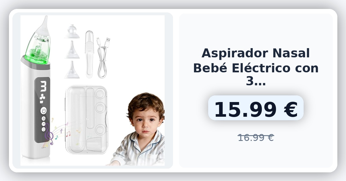 El aspirador nasal para bebé ofrece una succión suave y efectiva, con boquillas de silicona suave y tecnología anti-reflujo. Con 3 niveles de succión ajustables, música relajante y luces LED, hace que la limpieza nasal sea calmante y placentera para el bebé. Fácil de usar, de limpiar y recargar por USB, es ideal para llevar de viaje en su maletita incluida. 🇪🇸