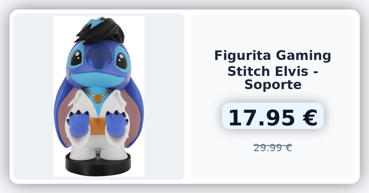 Convierte tu área de gaming en un escenario de diversión y estilo con este soporte Cable Guys de Stitch inspirado en Elvis. Compatible con mandos de consola, smartphones y más, este producto oficial de Disney añadirá un toque único y colorido a tu espacio mientras mantienes tus dispositivos cargados y organizados. Un imprescindible para los fans de Lilo & Stitch y del universo gaming en general. 🇪🇸