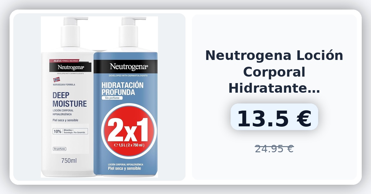 🌀 Neutrogena Fórmula Noruega Hidratación Profunda Loción Corporal Hipoalergénica (2 X 750 ml), crema hidratante corporal para piel seca y sensible, crema hidratante con Pro Ceramida y Glicerina 🇪🇸