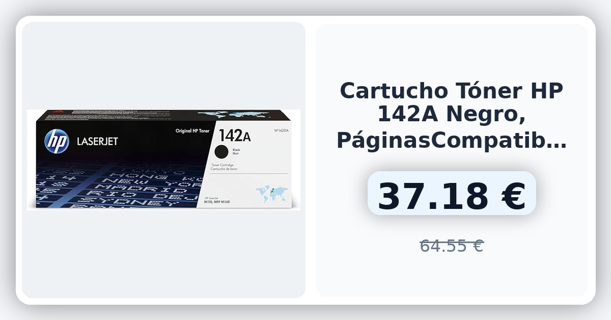🌀 HP 142A Negro, W1420A, Cartucho Tóner Original de 950 Páginas, Compatible con Las Impresoras LaserJet M110w, M140w e Impresoras LaserJet M110we y M140we 🇪🇸