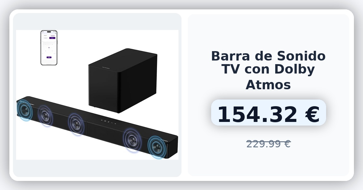 Sumérgete en un sonido envolvente 4D con la tecnología Dolby Atmos de este sistema de audio 5.1ch fácil de instalar. Potencia de 340W, subwoofer de madera para graves profundos, claridad vocal mejorada y control vía app. Además, HDMI eARC para audio Dolby Atmos auténtico y Bluetooth 5.4 para una conectividad superior. Una experiencia sonora inmersiva al alcance de tu mano. 🇪🇸
