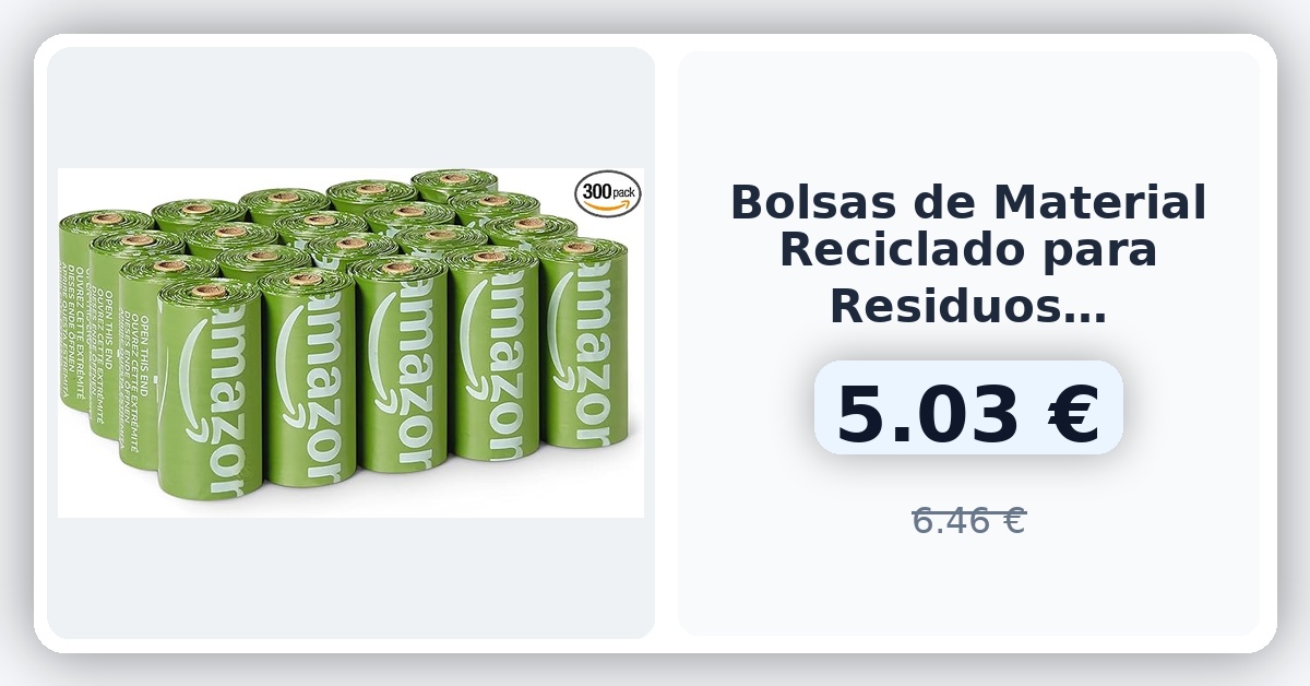 🌀 Amazon Basics Bolsas de Material Reciclado para Residuos de Perro Sin Dispensador Sin Perfume, 300 Bolsas (20 Paquetes de 15 Bolsas) 🇪🇸