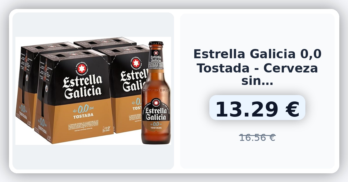 Descubre la cerveza sin alcohol Estrella Galicia 0,0 Tostada, con un sabor intenso y toques de malta. El equilibrio entre tradición gallega y modernidad te brinda una experiencia refrescante y única. Elige calidad, elige Estrella Galicia para disfrutar del mejor momento, sin alcohol pero con todo el sabor. 🇪🇸