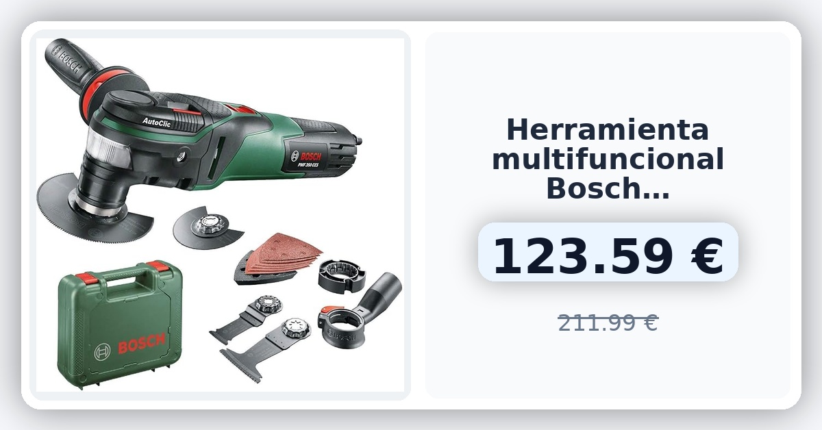 El juego de herramientas multifuncionales PMF 220 CE de Bosch es tu ayuda versátil para múltiples tareas. Con una amplia gama de accesorios, puedes fresar, raspar, serrar, cortar, lijar y pulir con precisión. Su preselección de velocidad y electrónica Bosch Constant garantizan un rendimiento constante. Además, incluye un tope de profundidad de 4 etapas y adaptador para aspiradora para un trabajo preciso y limpio. ¡Haz frente a cualquier proyecto con facilidad y profesionalismo! 🇪🇸