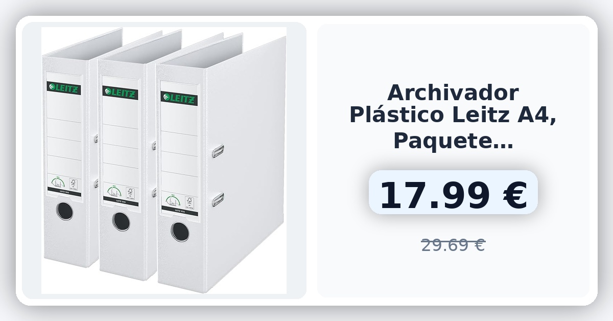 🌀 Leitz Archivador de plástico, pac 3 uds, tamaño A4 lomo de 80 mm de ancho, 90 % cartón y 30 % plástico reciclado preconsumo, mecanismo de 180 grados, capacidad para 600 hojas, color blanco, 310335001 🇪🇸