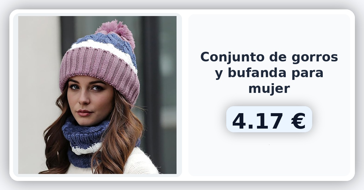 🌀 Juego de 2 gorros de invierno de moda para mujer, gorro cálido casual de punto, bufanda 🇪🇸