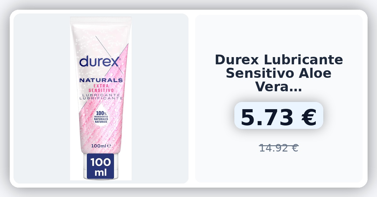 El lubricante Durex Naturals Extra Sensitivo es un gel íntimo 100% natural que alivia la sequedad vaginal. Con pH fisiológico, sin fragancias ni colorantes, y compatible con preservativos de látex. Fácil de usar y apto para sexo vaginal, anal y oral. Disfruta de relaciones placenteras sin molestias con ingredientes naturales y suave textura. 🇪🇸