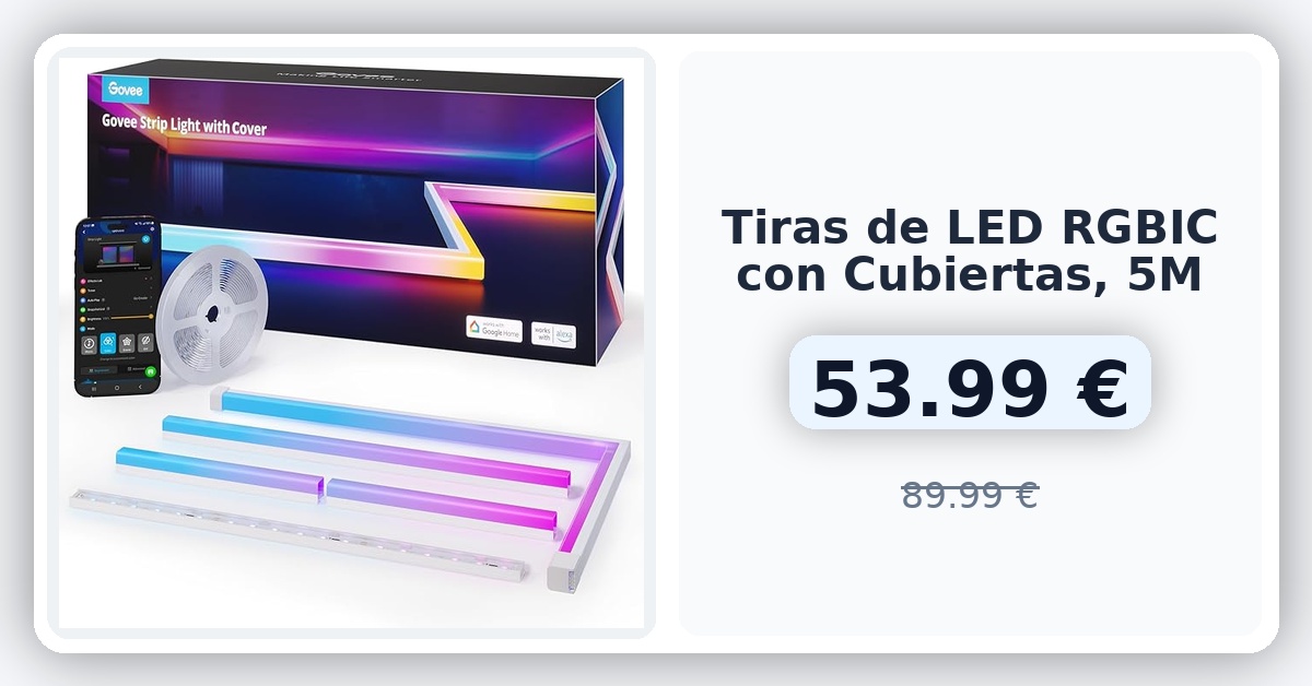 Ilumina tus espacios con suavidad y elegancia con las tiras de LED Govee. Con tecnología RGBIC y 64 modos de escena, podrás personalizar colores y decorar de forma única. Fáciles de instalar y controlar por app o voz, creando ambientes perfectos para cualquier ocasión. Personalizables, cortables y conectables hasta 10m para adaptarse a tus necesidades de iluminación. ¡Transforma tus espacios con estilo y modernidad! 🇪🇸