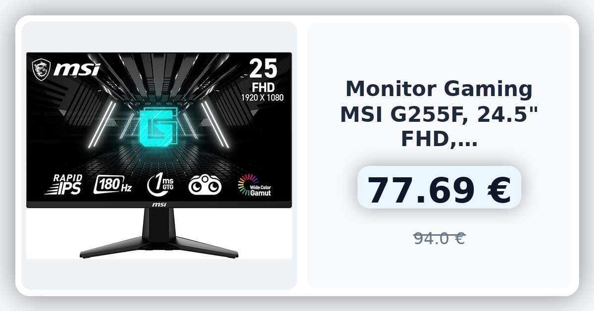 🌀 MSI G255F - Monitor Gaming de 24.5", FHD (1920x1080), 180 Hz / 1ms, Adaptive-Sync, Display Port 1.2a, HDMI 2.0b, Negro 🇪🇸