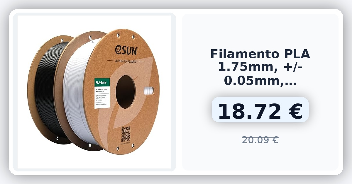 El filamento PLA eSUN es una opción ideal para impresoras 3D de alta velocidad. Con mayor precisión y menor tendencia a deformarse, este filamento se funde suavemente y ofrece una alta tasa de éxito en la impresión. Su enfriamiento rápido y fluidez equilibrada garantizan resultados de calidad. Además, su embalaje sellado al vacío asegura su integridad antes de su uso. 🇪🇸