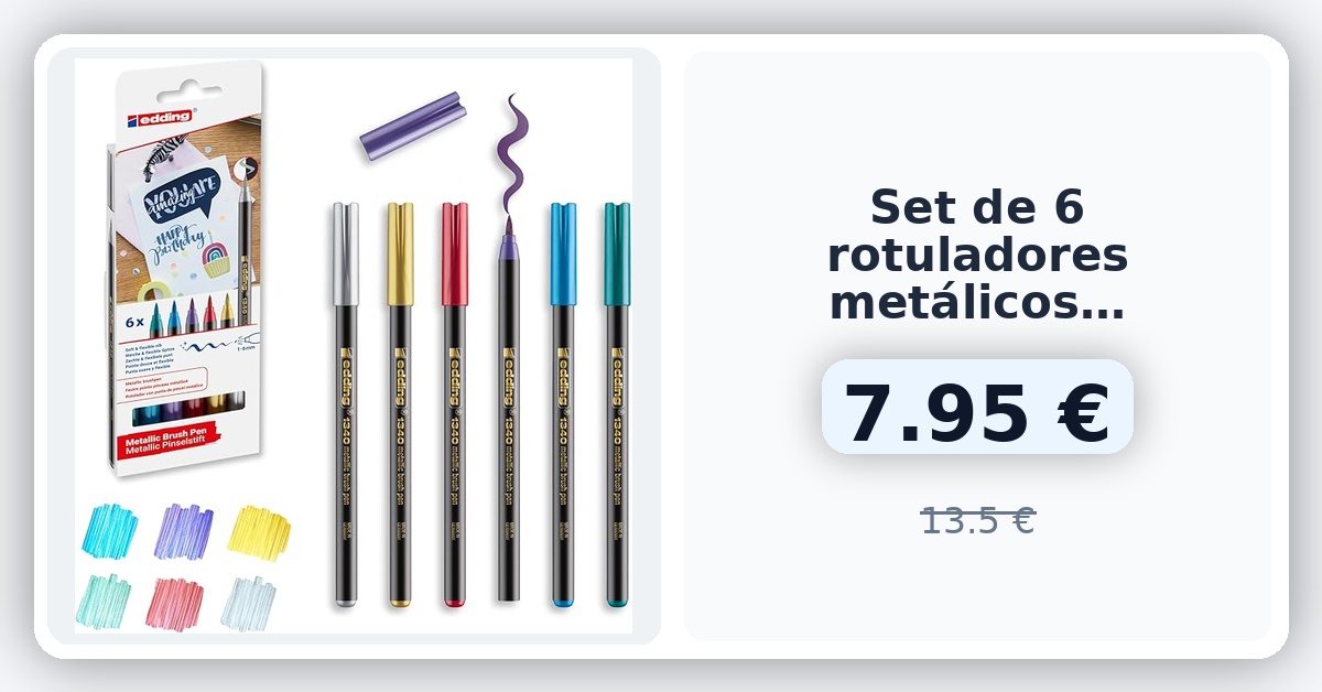 🌀 edding 1340 rotulador metálico - set de 6 rotuladores - punta flexible de 1-6 mm - rotulador metálico con purpurina para escribir, dibujar y hacer bocetos - alta opacidad incluso en papel oscuro 🇪🇸