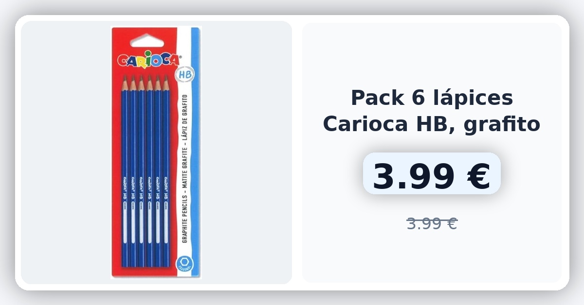 Descubre los lápices de resina CARIOCA HB: irrompibles y fáciles de afilar. Su mina extra fuerte y colores intensos los hacen ideales para crear sin límites. ¡Además, son resistentes a caídas! Con ellos, tendrás siempre listo tu material de dibujo. 🇪🇸