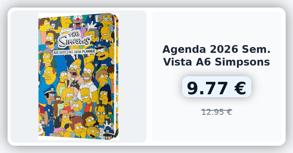 ¡Atrévete a organizar tu vida escolar con estilo junto a la Agenda Escolar 2025-2026 Semana Vista! Con divertido diseño inspirado en Los Simpsons, incluye extras como marcapáginas y pegatinas para personalizar. Su formato A5 y contenidos en varios idiomas la convierten en la aliada perfecta para planificar tus actividades diarias y destacar fechas importantes. Resistente y duradera, ¡te acompañará durante todo el curso escolar con alegría y funcionalidad! 🇪🇸