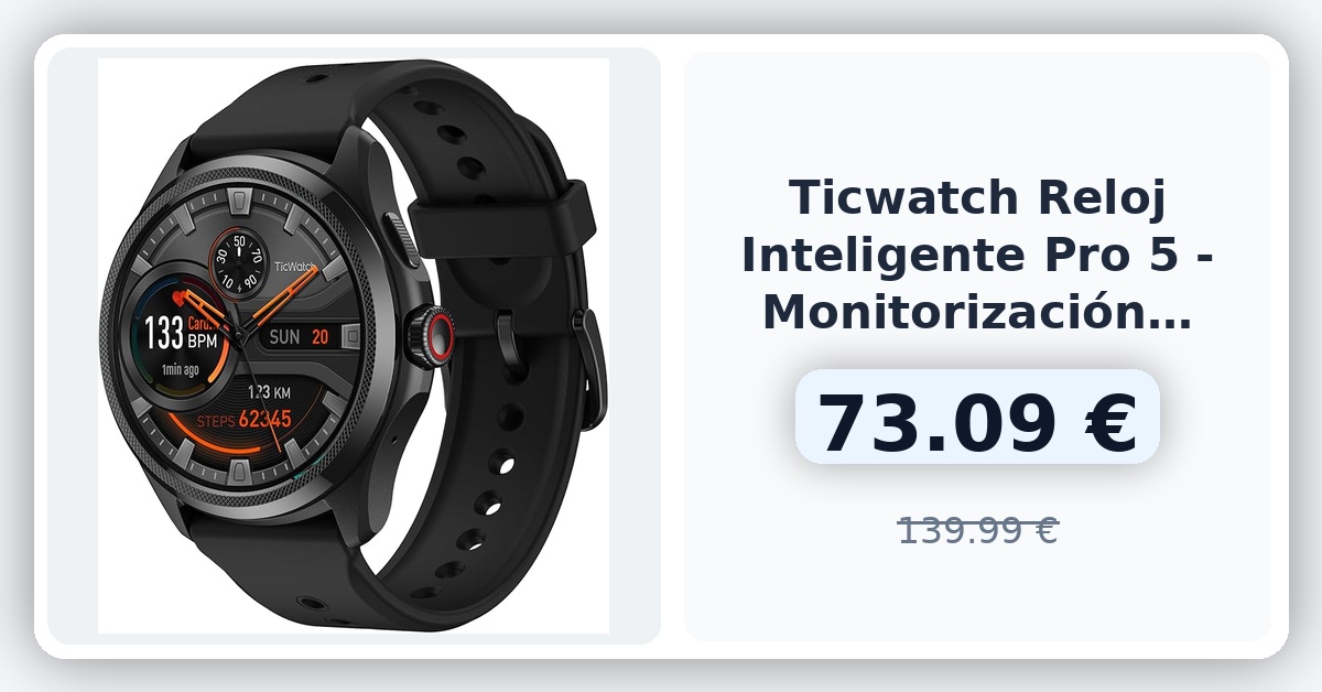 Descubre el Ticwatch Pro 5 con un chipset Snapdragon W5+ Gen 1 y Wear OS de Google. Disfruta de 80 horas de autonomía, carga rápida, corona giratoria para un control versátil, pantalla OLED de ultra bajo consumo y seguimiento avanzado de salud y fitness. Sumérgete en una experiencia inteligente y de alto rendimiento. 🇪🇸