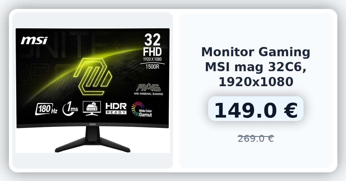 🌀 MSI Monitor Gaming mag 32C6, 1920x1080 (FHD), 31.5", 16:9, Curve 1500R, Negro 🇪🇸
