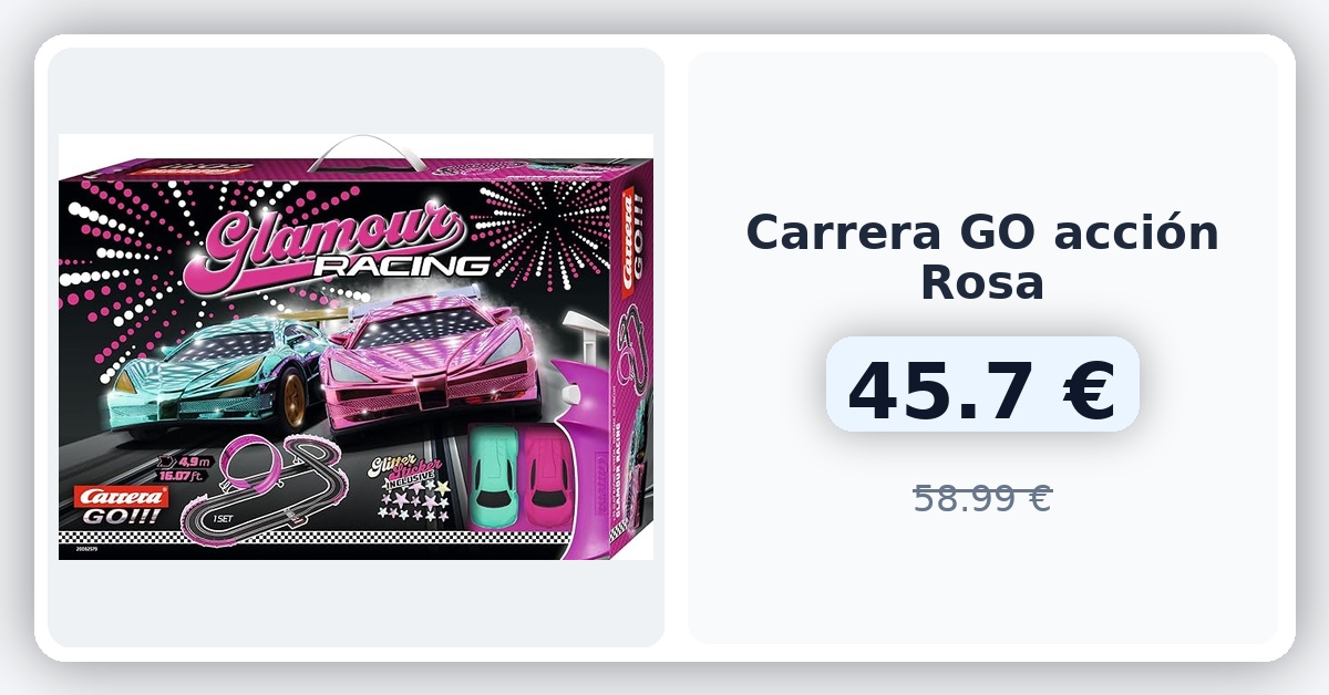 Experimenta la emoción de las carreras en casa con el set "Pink Action Racing" de Carrera GO!!! Con una pista de 4,9 metros llena de curvas desafiantes, bucles y chicanes, este juego ofrece diversión colorida para grandes y pequeños. Incluye dos llamativos vehículos con pintura metálica. ¡Una aventura que desafiará tus habilidades como piloto! 🇪🇸