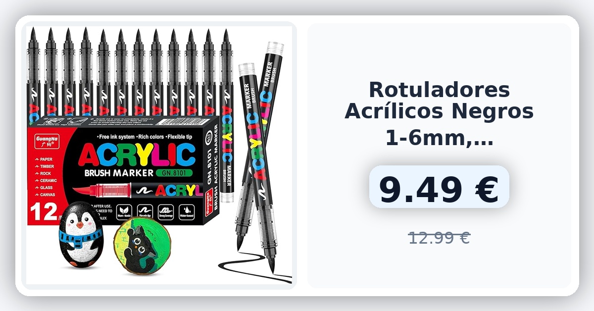 🌀 VAKKI 12 PCS Negro Rotuladores Acrilicos, 1-6mm rotulador permanente negro, rotuladores permanentes Marcadores AcríLicos Para Colorear, Piedra, CaligrafíA, Madera, Lienzo, Vidrio, CeráMica 🇪🇸